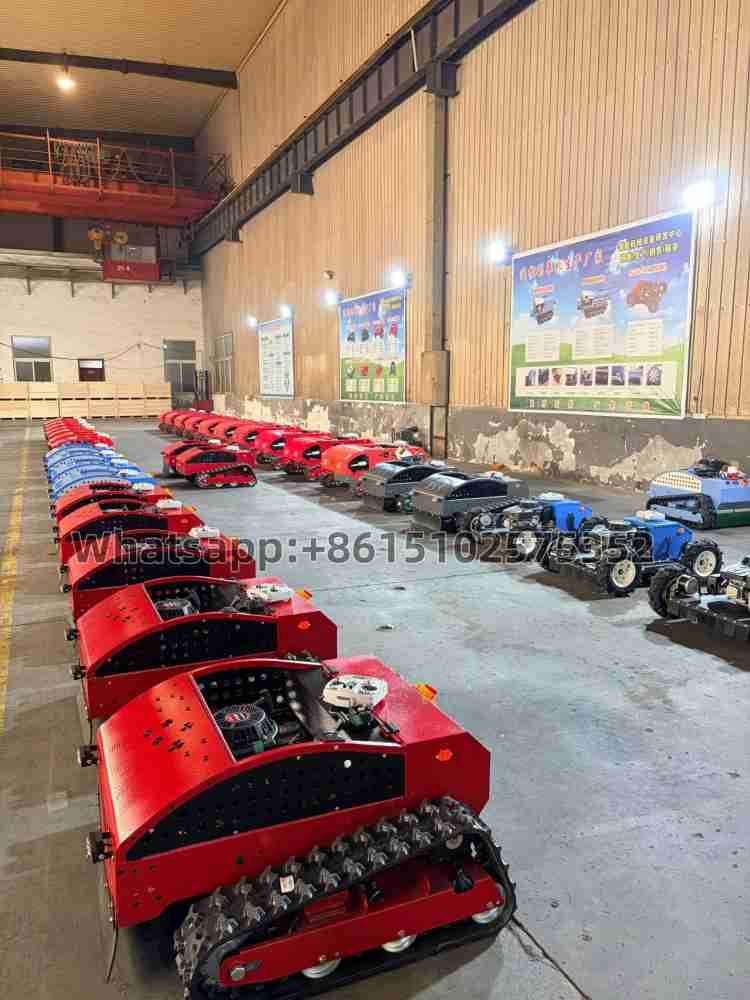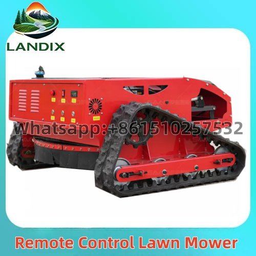 LANDIX Boost your mowing efficiency with our remote-controlled tracked lawn mower, built for tough terrains like slopes, rough ground, and dense vegetation. Powered by a strong engine and equipped with durable crawler tracks, it ensures excellent stability and high cutting performance. The advanced remote control system allows safe, one-person operation while reducing labor costs. Ideal for orchards, farms, and large landscaping projects, it’s a reliable, high-efficiency solution for professional use.