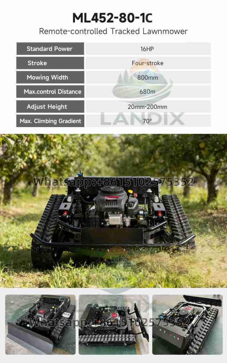 Meet the LANDIX 16HP Smart Remote Control Crawler Lawn Mower—your ultimate solution for safe, efficient, and versatile vegetation management. Powered by a robust 16HP engine, this machine delivers consistent torque to tackle tall, thick grass, brush, and weeds with ease, even on uneven terrain.